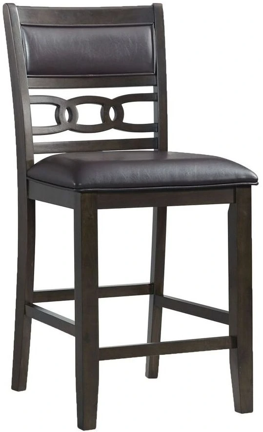 The Amherst Counter Height Side Chair Set will look fantastic in your living room! These side chairs will look great around your dining table. This dynamic duo features a faux leather, upholstered seat and back that will give you ultimate comfort while you enjoy your meals. The back of the chair also features a cool, link design that instantly adds flair to this already stunning set. The dark, walnut finish pairs beautifully with the black fabric and a combination you'll enjoy year after year. Add this chair set to your home today for a look you'll enjoy day after day!