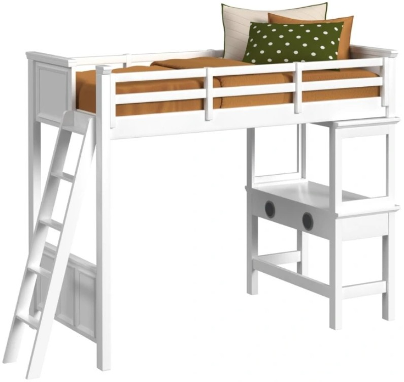 Elements International Hampton Kids White Youth Twin Loft Bed with Ladder and Desk