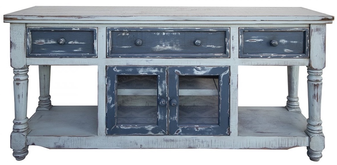 This tv stand is a part of the Aruba Collection and features solid pine construction with a sky blue antiqued finish.Read More