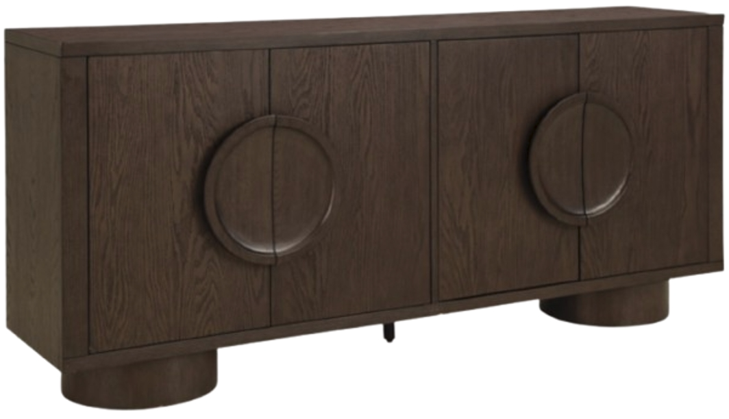 Sleek. Striking. Sculptural. This accent cabinet refines the art of functional fashion. Outfitted in a luxe dark brown finish, it’s an apt addition to contemporary entryways or dining areas. Its distinctive linear profile is beautifully contrasted by the curves of the oversized round legs and circular door pulls.Read More