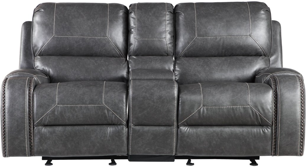 The loveseat has dual glider/recliner ends and features console with hidden storage and 2 cupholders; also has 2 USB charging ports and electrical outlet