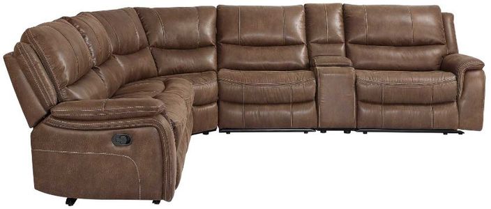 6-Piece Manual Reclining Sectional Set includes Left-Arm-Facing Recliner, Armless Chair, Wedge, Armless Recliner, Console w/Power, and Right-Arm-Facing Manual Recliner